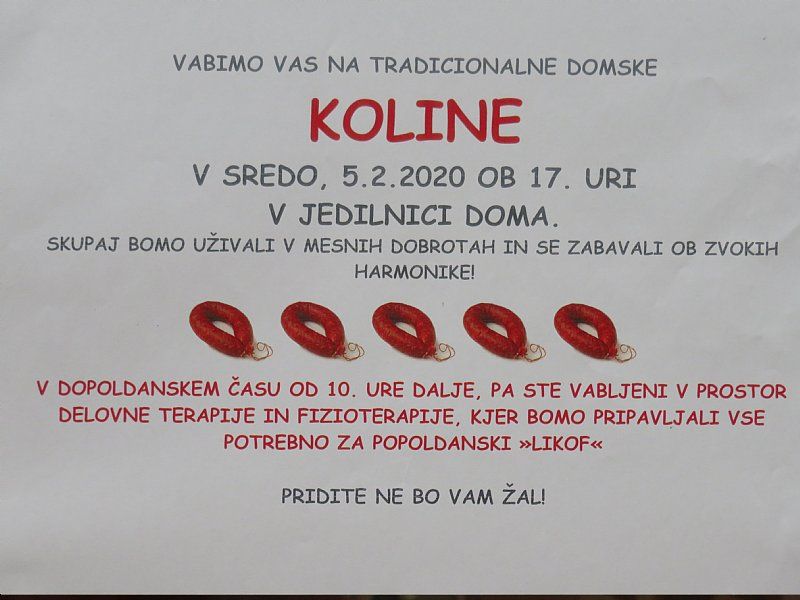 sredo dopoldan se je rezalo, mlelo, delalo klobase, popoldan pa likof z muziko,