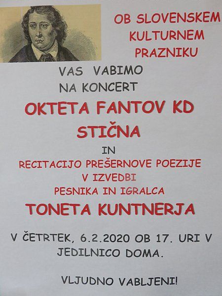 Ob slovenskem kulturnem prazniku nam je Prešernove pesmi recitiral -tone Kuntner