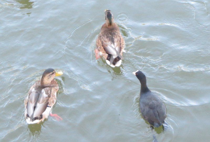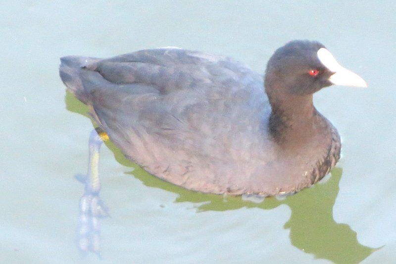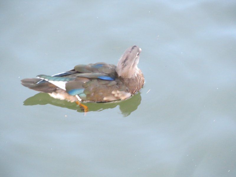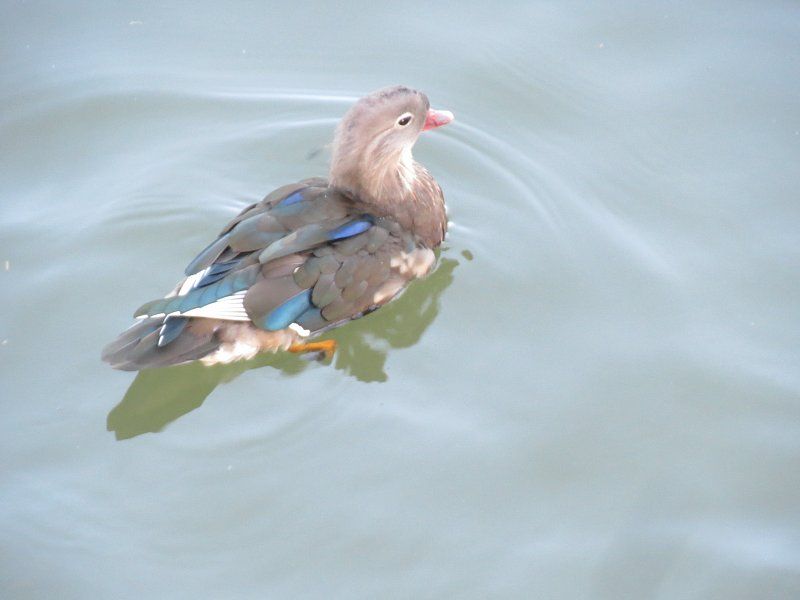 nova račka z rdečim kljunom in modrimi lisami po telesu