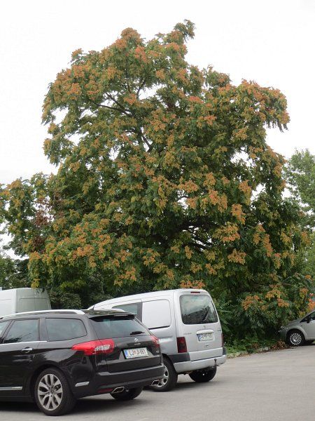 Zanimivo ogromno drevo na parkirišču pred domom.