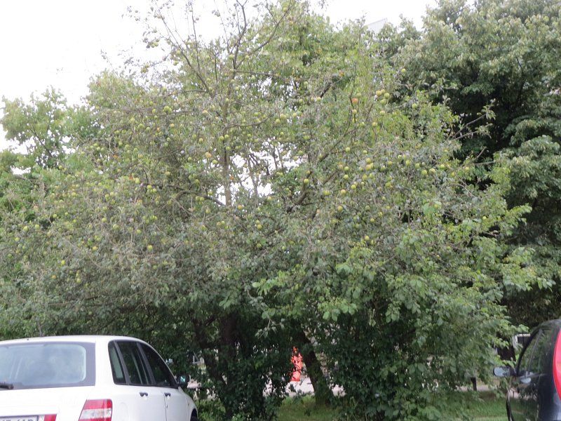 Jablana na parkirišču pred domom.