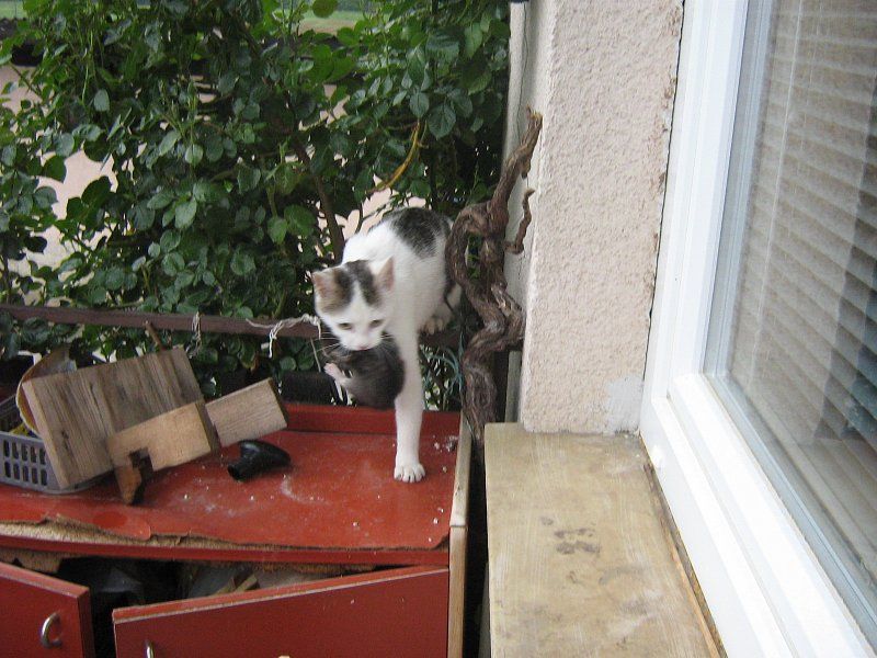 Takole je naša Klara prinesla 4 mladičke po vrtnici,ki je visoka 3 metre na balk