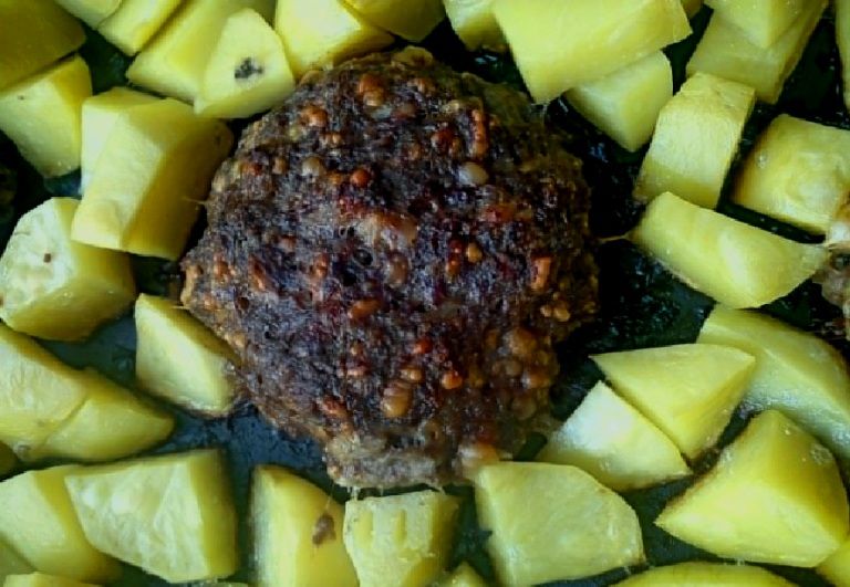 Odličen goveji golaž z zdrobovimi rezinami in maslenim brstičnim ohrovtom