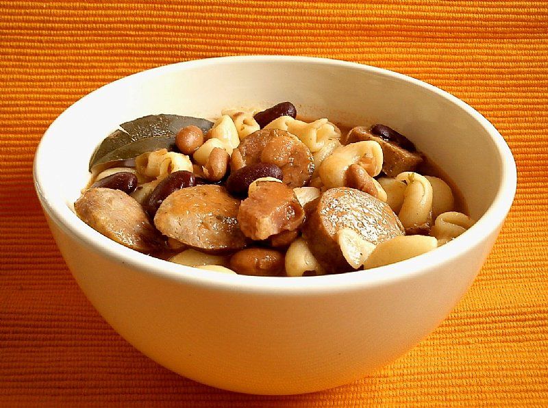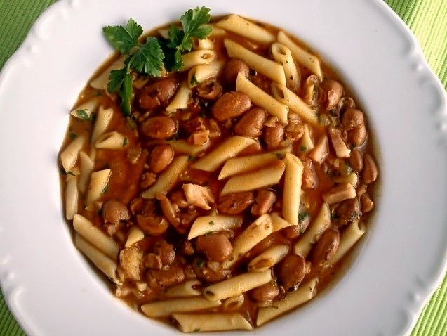 odlična gosta pašta fižol s kranjsko in mesom iz tünke