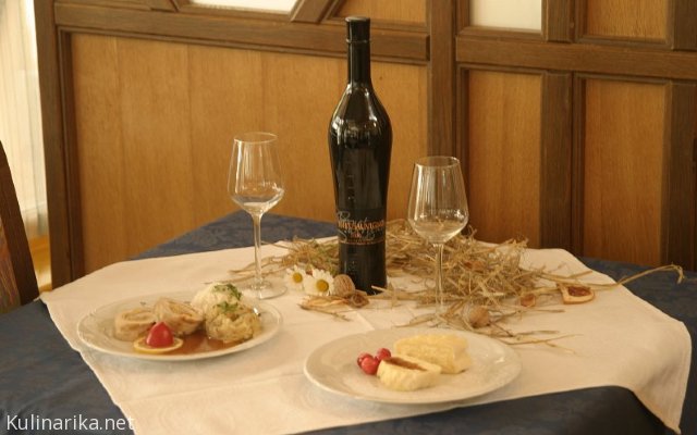 Žrebiček s paprično omako, kifelčar, domači skutni štrukelj