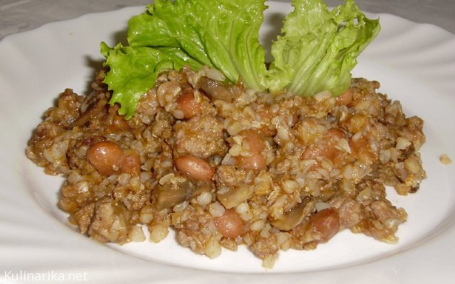 Mleto meso z ajdovo kašo, fižolom in šampinjoni