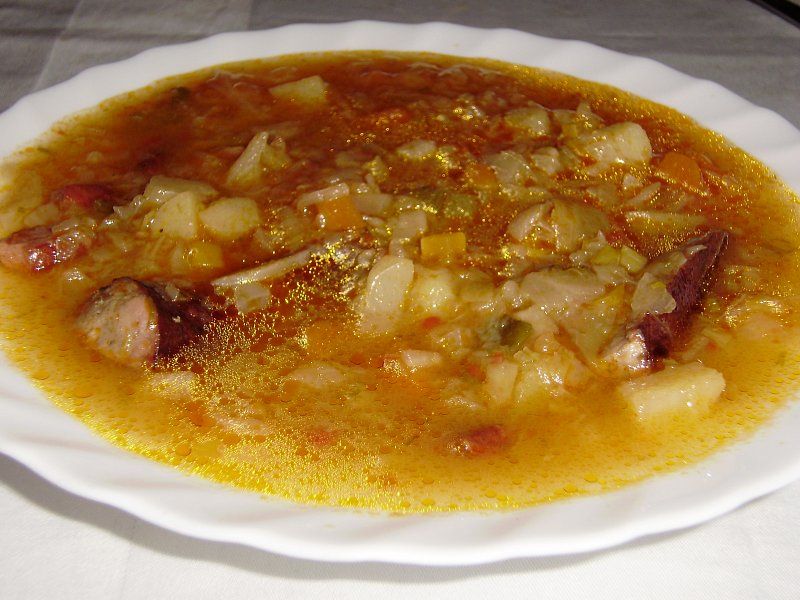 Kislo zelje, rezina suhe vratovine, polovica klobase ter matevž