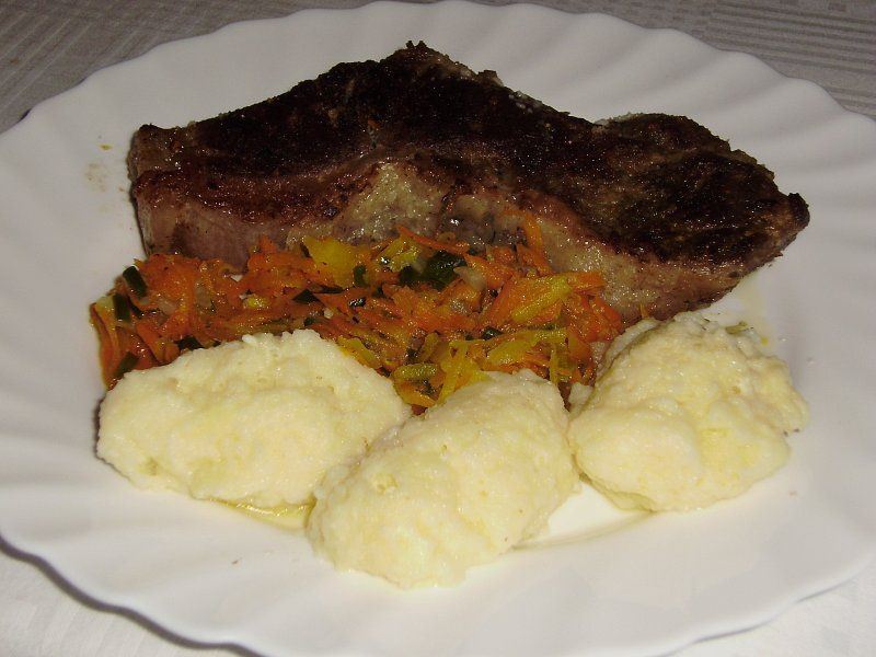 Popečen šimbas, korenčkova omaka, smetanovi žličniki