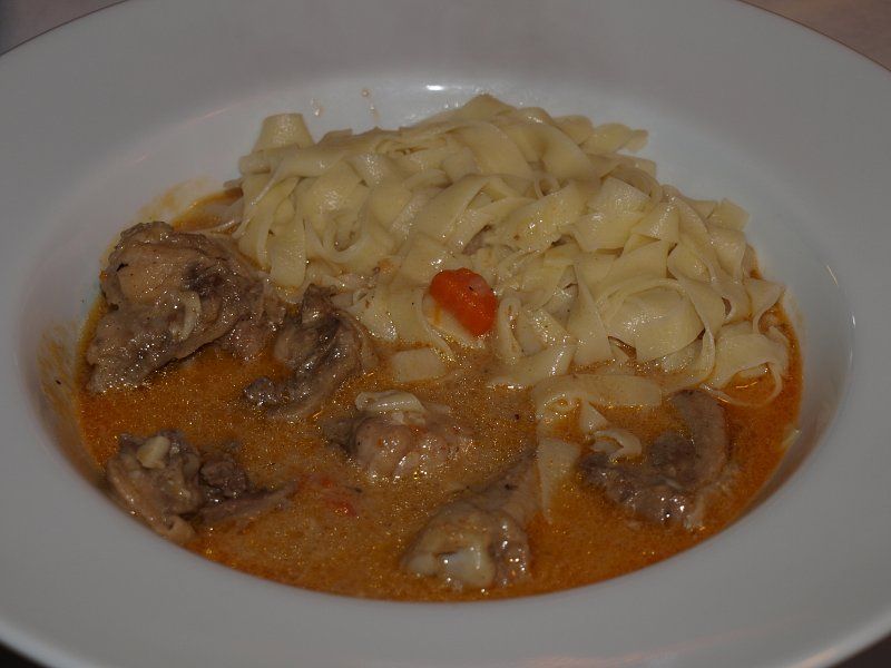 Paprikaš iz piščančjega hrbta, široki rezanci