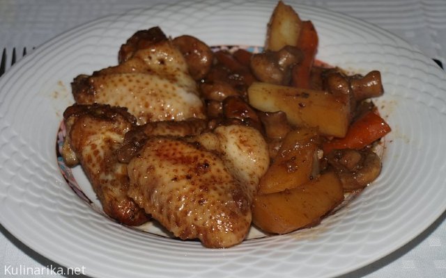 Pijane perutničke s šampinjoni, korenčkom i krompirjem