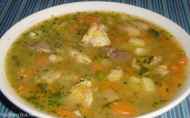 Meso iz juhe, strganci s skuto, zelenjavni mix