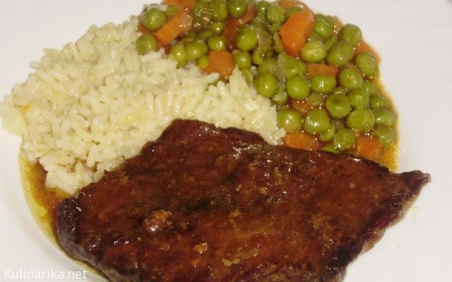 Goveji zrezek v omaki, rizi-bizi