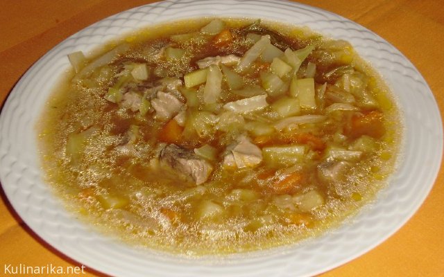 Čorb ica (sladko zelje, korenček, krompir, puranji koščki)