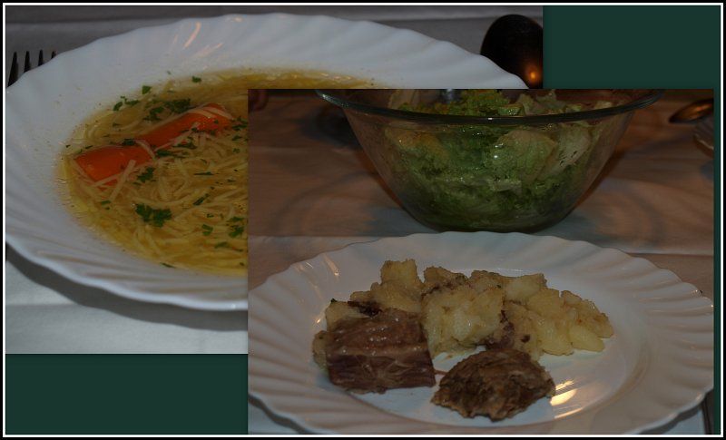 Goveja juhica; pražen krompir, govedina iz juhe, zelena solata