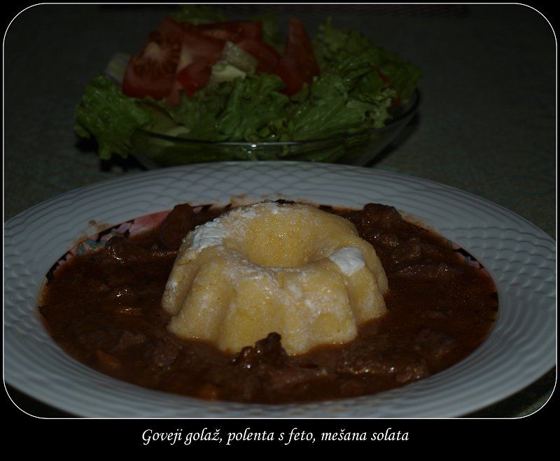 Goveja juhica; pire krompir, špinača, pečene piščančje bedrce, zelena solata