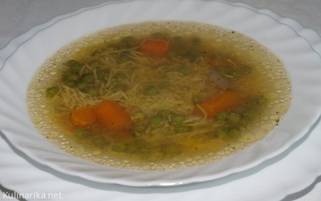 Dva rdeča korenčka, en rumen korenček in zeleno očisti ter nareži na enakomerne kockice. Nakockano zelenjavo dodaj na čebulo in klobaso, premešaj ter na kratko poduši. Z luknjičasto lopatko dodaj ohrovt, podlij z vodo, soli, vegetaj, popraj... posodo pokrij in pusti da se kuha.