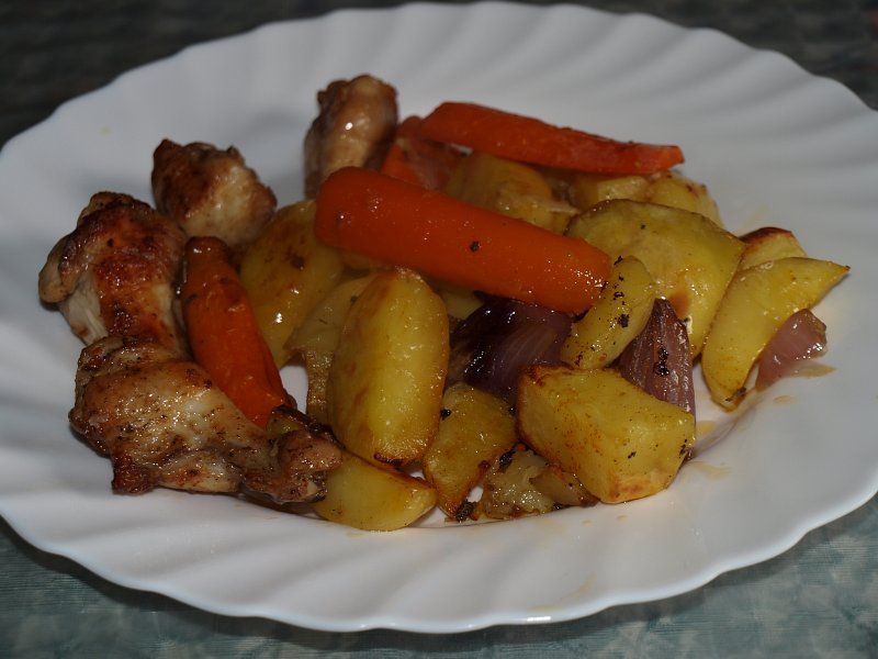 Pečene perutničke, krompir in korenček