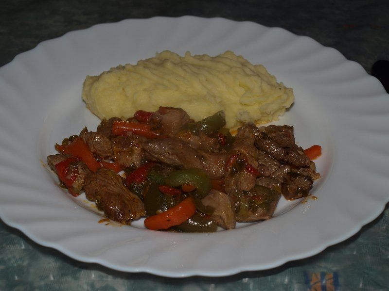 Puranji koščki, zelenjavni mix, pire krompir