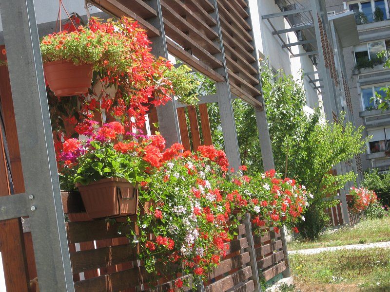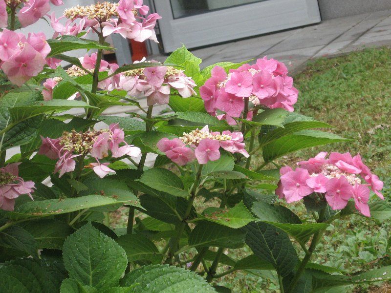 .. v malem atriju pa že delno odcvetelo hortenzijo...