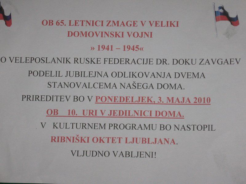 Ob 65.letnici zmage v veliki domovinski vojni 41-45 je veleposlanik Ruske fede-