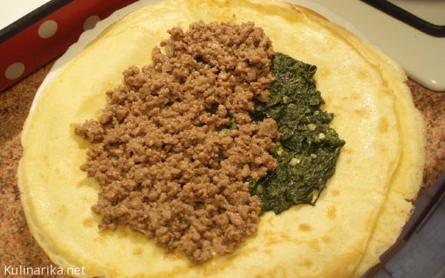 Palačinko nadevamo najprej s špinačo nato z mletim mesom