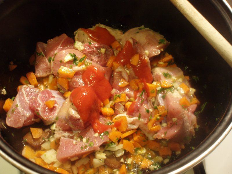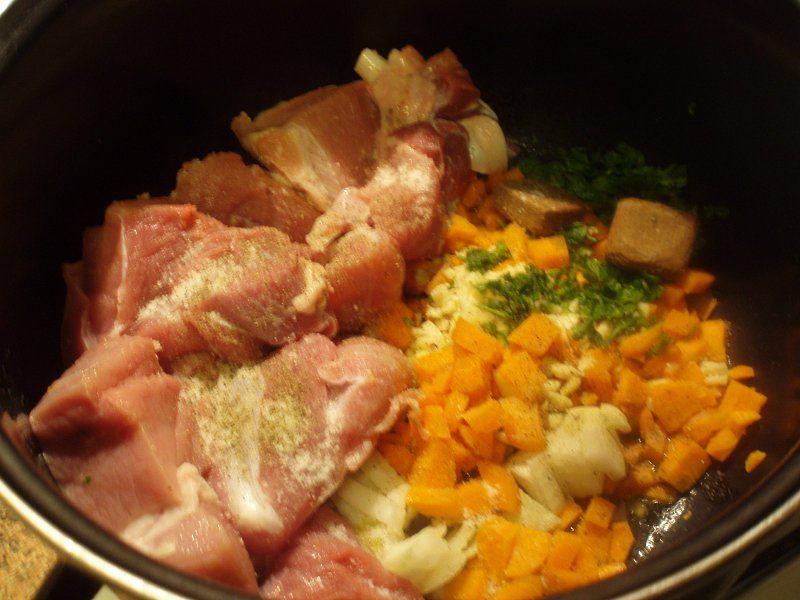 Telečje meso, korenčka, čebula, česen, peteršilj