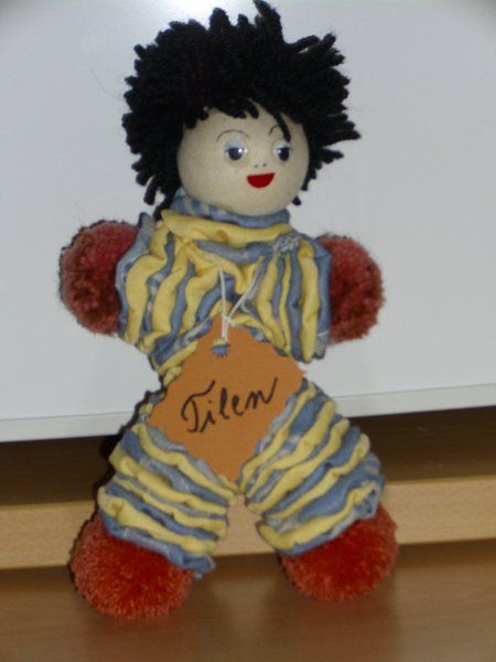 Če živite v bližini, vas vabim, da nas obiščete, pa boste v živo videli. Sicer pa: glava penasta guma ali stiroporne kroglice, laski in cofki volna, ostalo ostanki blaga, učki in usta pri večjih iz usnja, učki pri malih pa
