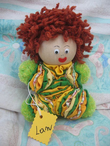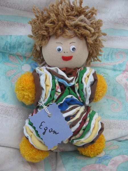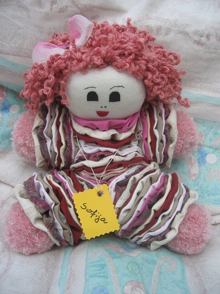 Če živite v bližini, vas vabim, da nas obiščete, pa boste v živo videli. Sicer pa: glava penasta guma ali stiroporne kroglice, laski in cofki volna, ostalo ostanki blaga, učki in usta pri večjih iz usnja, učki pri malih pa