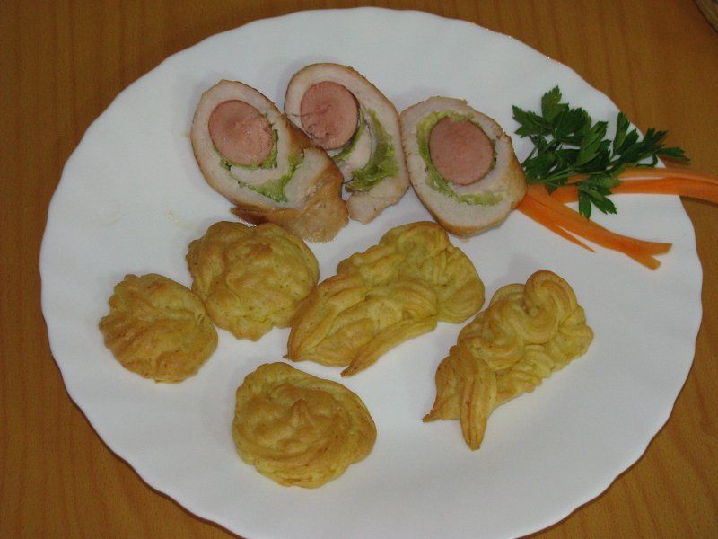 piščančja rolada,pommes duschesse