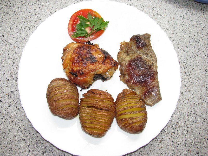 narezan pečen krompir,pečena govedina,pečen piščanec
