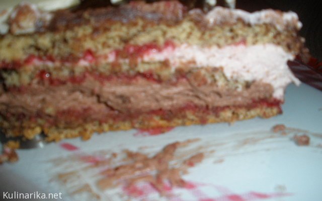 Stračatela testo s čokoladno in malinovo kremo
