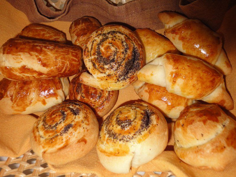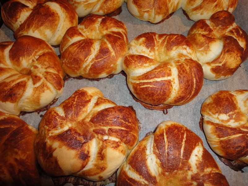 Migla je res mojstrica s kvašenim testom. Je kar dobro, da si dobrote ogledujemo takole na fotografijah, ker če bi bilo pa na dosegu roke, pa ne vem čemu bi se lahko odrekla. Po moje je vse za probat...!