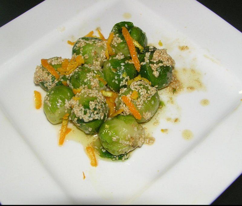 brstični ohrovt s sezamom in pomarančo
