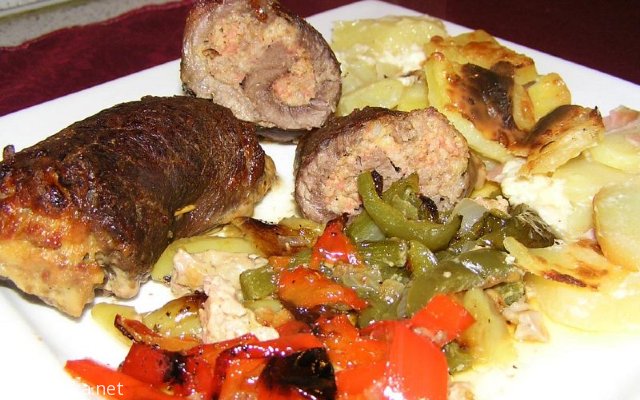 meksikančki s peperonato, zraven krompirjev narastek z mortadelo