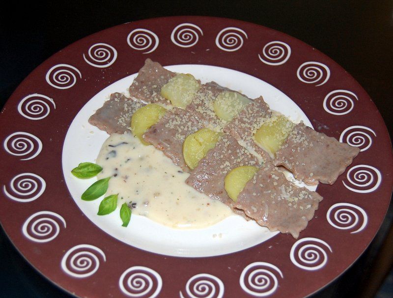 kostanjeve testenine s krompirjem v gobovi omaki