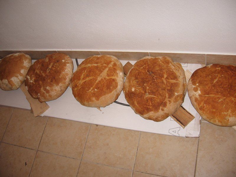 Peka kruha v krušni peči.Kruh je pekla moja mami pri meni doma.Sama se ne upam tako velike količine.Žal mi je le, da vam ne morem posredovati vonja , ki se širi po hiši ob jemanju kruha iz peči.