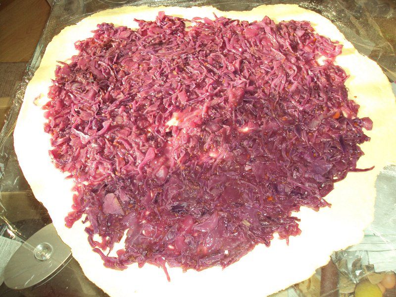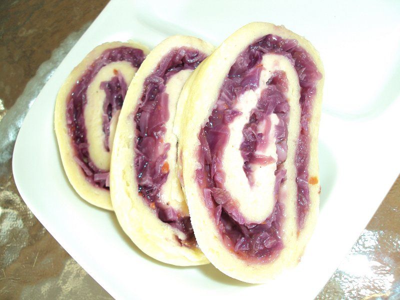 Rulada s skutnim testom in polnilom iz rdečega zelja