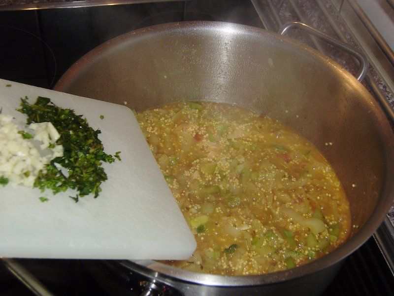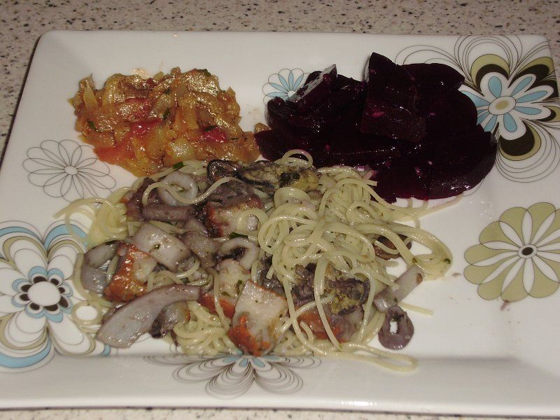 Polnozrnati peresniki z omako iz bučk, čebule in mandljev
