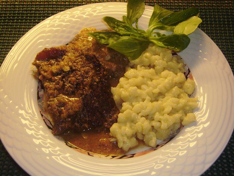 Polnozrnati peresniki z omako iz bučk, čebule in mandljev