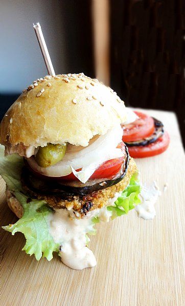 Grillita sendviči z jajčevci, humusom in okisano kumaro