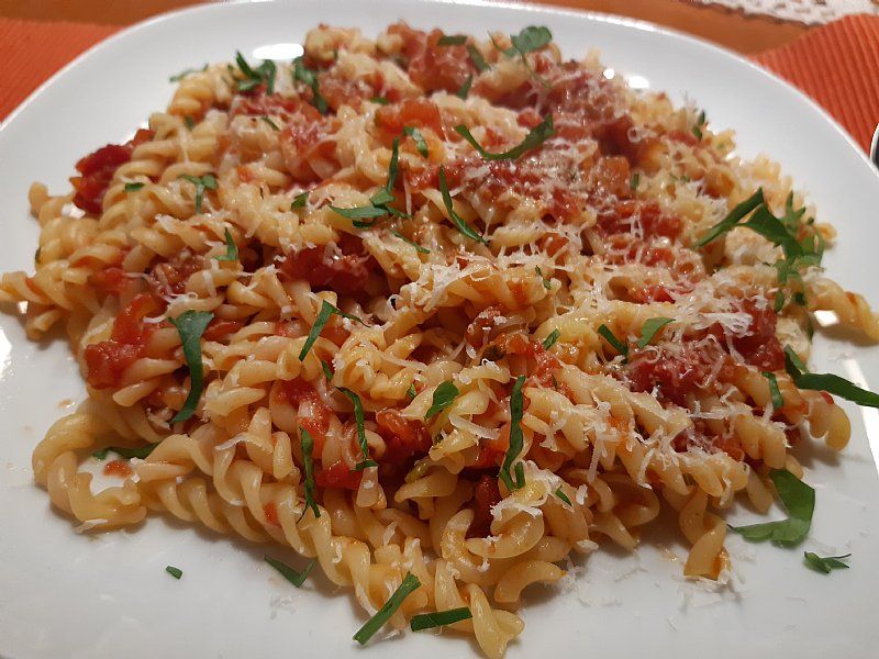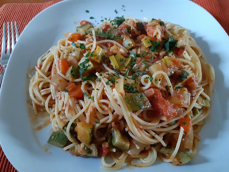 Lazanja z jajčevci, genovskim pestom in češnjevci