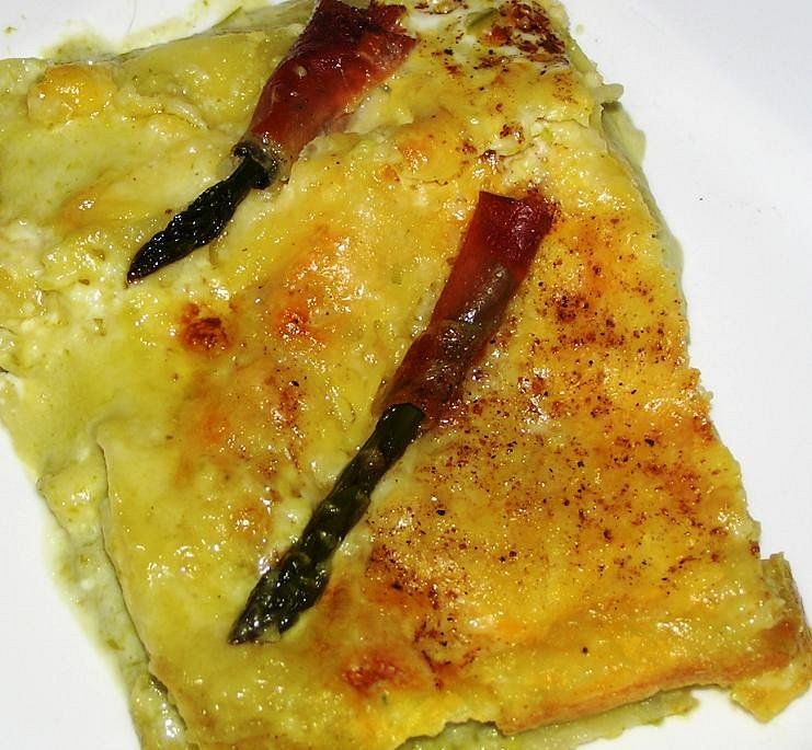 Polnozrnati peresniki z omako iz bučk, čebule in mandljev
