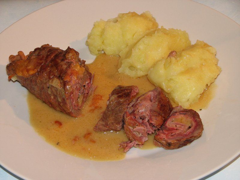 Široki rezanci s kuhanim pršutom, mlado špinačo in porovo kremo