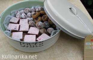 domov » foto albumi » album: Peciva, piškoti » Jagodne sanje, Čokoladni huzarski krapki, Razpokani piškoti, Pralineji