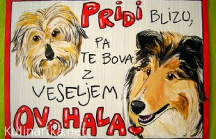 PS: Konkretno tale je razstavljena pri nas doma, pred vhodom v hišo ... ker tale moj zlati nežni kuža res ne pozna šale, ko pride kak tujec pred vrata, njegova srčna želja je kar vse odgnati in se temu primerno obnaša. Ampak kaj, ko jaz na vsak način zaviram razvoj tega njegovega talenta :))) - ker nočem, da mi požre vse obiske :)