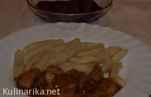 domov » foto albumi » album: Kosilo je na krožniku » Z jabolko nadevano piščančje bedro, rizi-bizi, pomarančna omaka