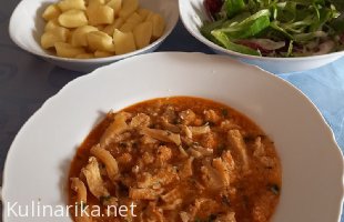 domov » foto albumi » album: Kosila v letu 2024 » Goveji zrezki v naravni omaki, krpice na čebuli in ocvirkih