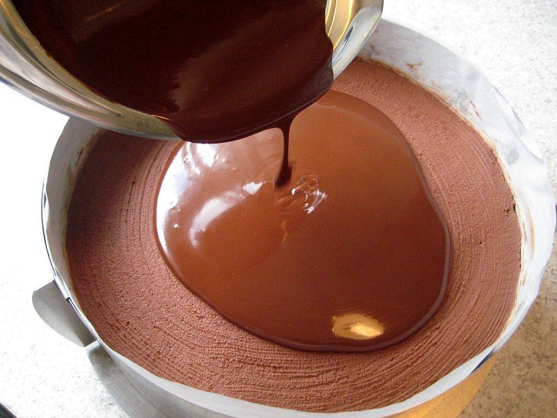domov » foto albumi » album: Majska torta » Čokoladni preliv polijemo na ohlajeno maso.