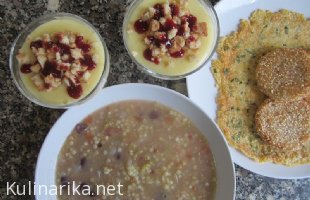 Polpeti cvetača-brokoli z bučnim pirejem in špinačno omako
