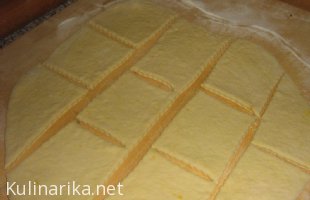 Buhteljne pa oblikujem tako,da najprej vse 4 kote spnem,testi po robovih nekoliko stisnem,da se sprime,seadaj pa obrnem in vroki oblikujem kot pri kuglanju krofov.Sicer pa oblika ni tako pomembna,važno je ,da vse stike dobro stisneš,dovolj pa mora biti tudi testa.V marmelado pa zaradi kompaktnosti vmešam malo piškotnih drobtin in tako manj izteka .
